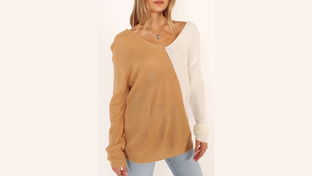 Inspired by nature, this colorblock sweater in earthy tones blends seamlessly with any fall wardrobe. It’s versatile and easy to pair with various outfits.