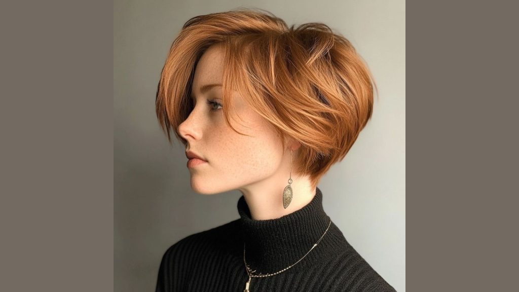 A long pixie with a side fringe brings softness and femininity to shorter hair. This versatile cut frames the face beautifully, offering easy styling options for a chic look.