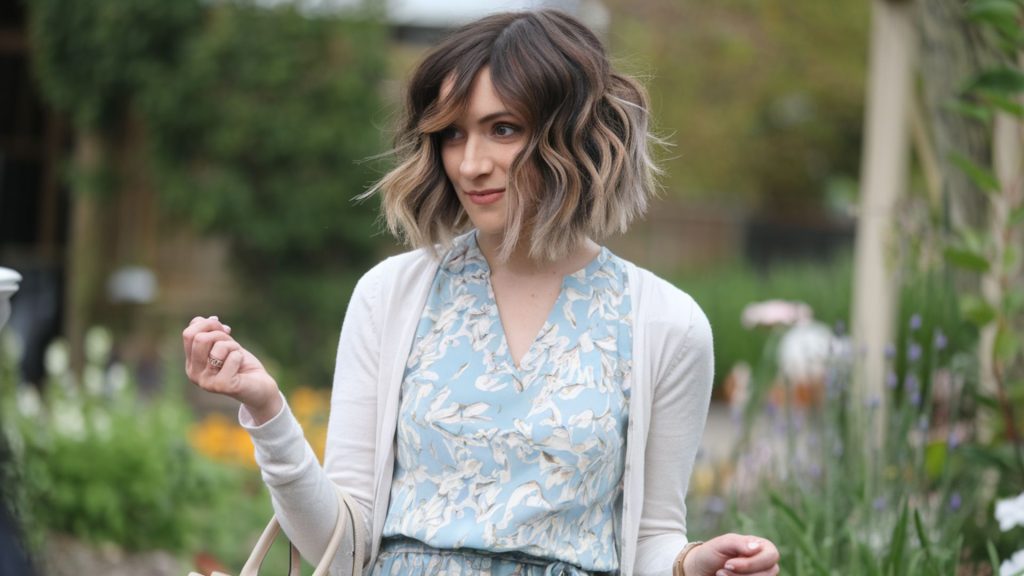 Combine curls with highlights in a choppy bob for a style that’s full of depth and movement. This look is all about enhancing natural beauty with a touch of glamour.