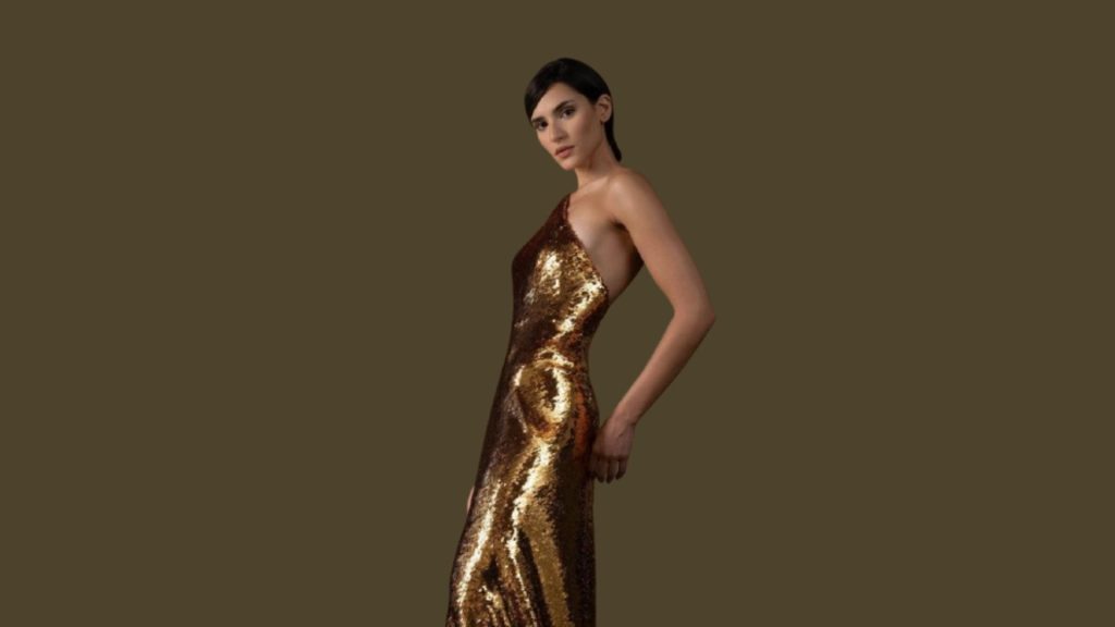 This golden glow evening dress is perfect for making a statement at any fall or winter event. Its rich metallic sheen catches the light beautifully, ensuring you stand out from the crowd. Pair it with simple accessories to let the dress shine.